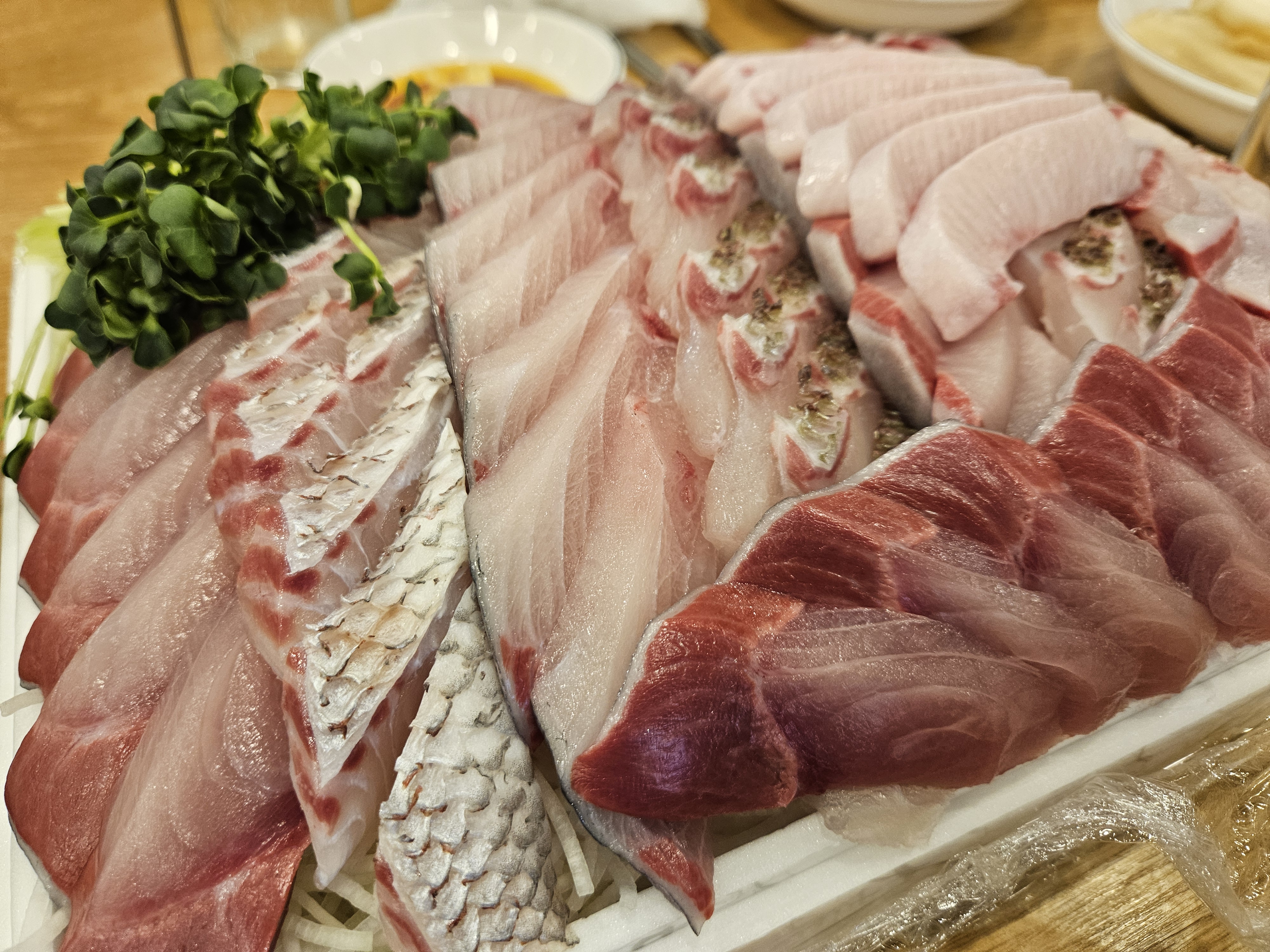 워매 이게 뭐야! 맛있는 방어가 그냥 부위별로 싹 나와버렸다. 진짜 쫀득한 횟감이 아직도 기억에 남는다. 비릿한 향 하나도 없이 방어 특유의 쫄깃함과 기름진 맛이 아주 찰졌다. 부위가 다양하다보니까 식감도 다양해서 먹기에 더 좋았다. 사실 이 날 내 생일 파티였다. 내가 주최한건 아니고 생일파티를 당한 거긴 한데 아무튼 기분 좋았다.