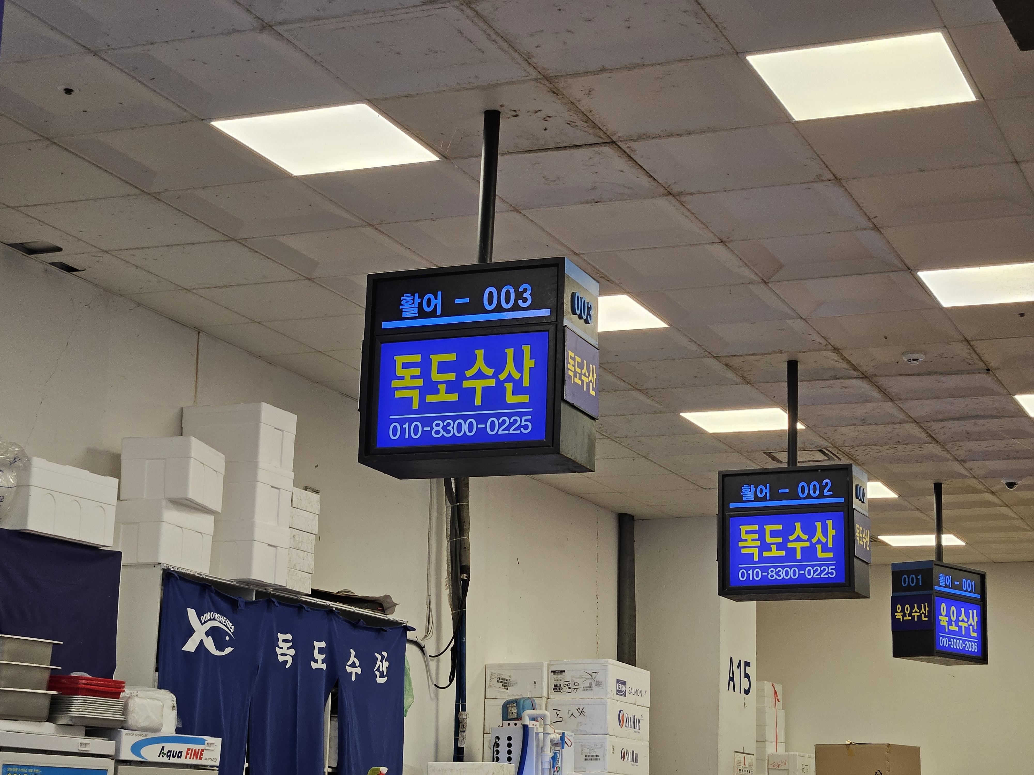 그 중에서도 우리가 골랐던 독도수산! 독도수산은 그날 그날 가장 좋은 횟감들만 프리미엄하게 취급한다고 하셨다. 그래서 생일 날 기분도 낼겸 맛있는 걸로 골랐다. 맛도 진짜 좋았고 신선했다.