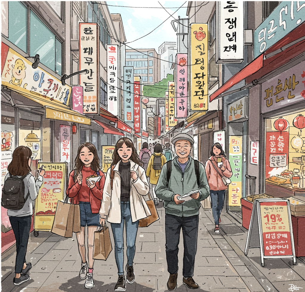 🔹 광장시장 – 한국 전통 시장에서 빈대떡, 마약김밥 맛보기