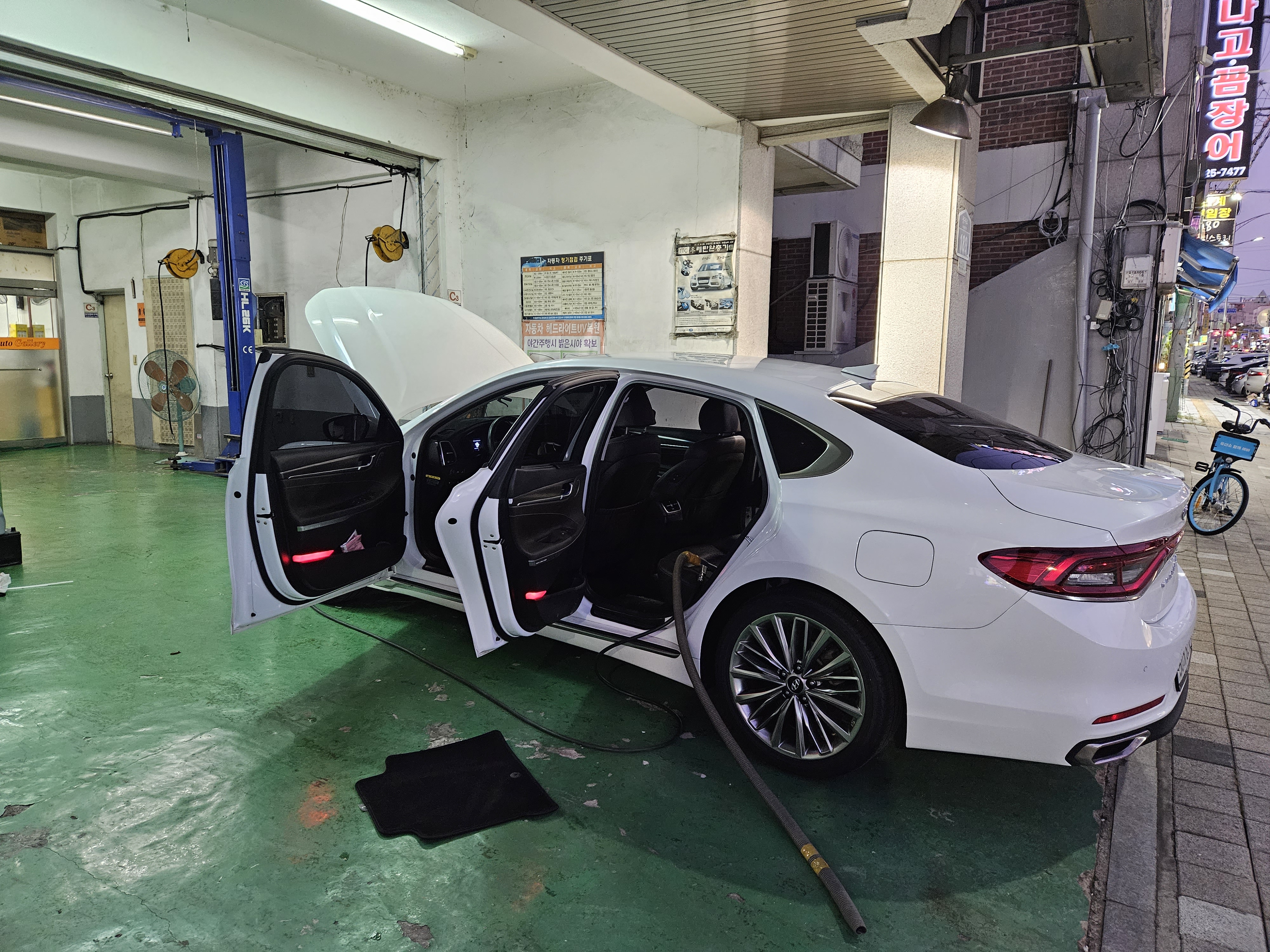 인계동 쪽에 위치하고 있다. 시청 뒤쪽으로 넘어가면 옛날 상가들이 많은 곳이 있는데 그 중간에 있다. 카센터, 선팅, 세차 등 자동차 관련 시설이 많이 밀집한 곳이다. 정기 점검 겸 엔진오일을 교체하고 왔다. 일단 차가 지상에 있을 때 전자 기능들이 잘 작동하는지 먼저 점검해주셨다.