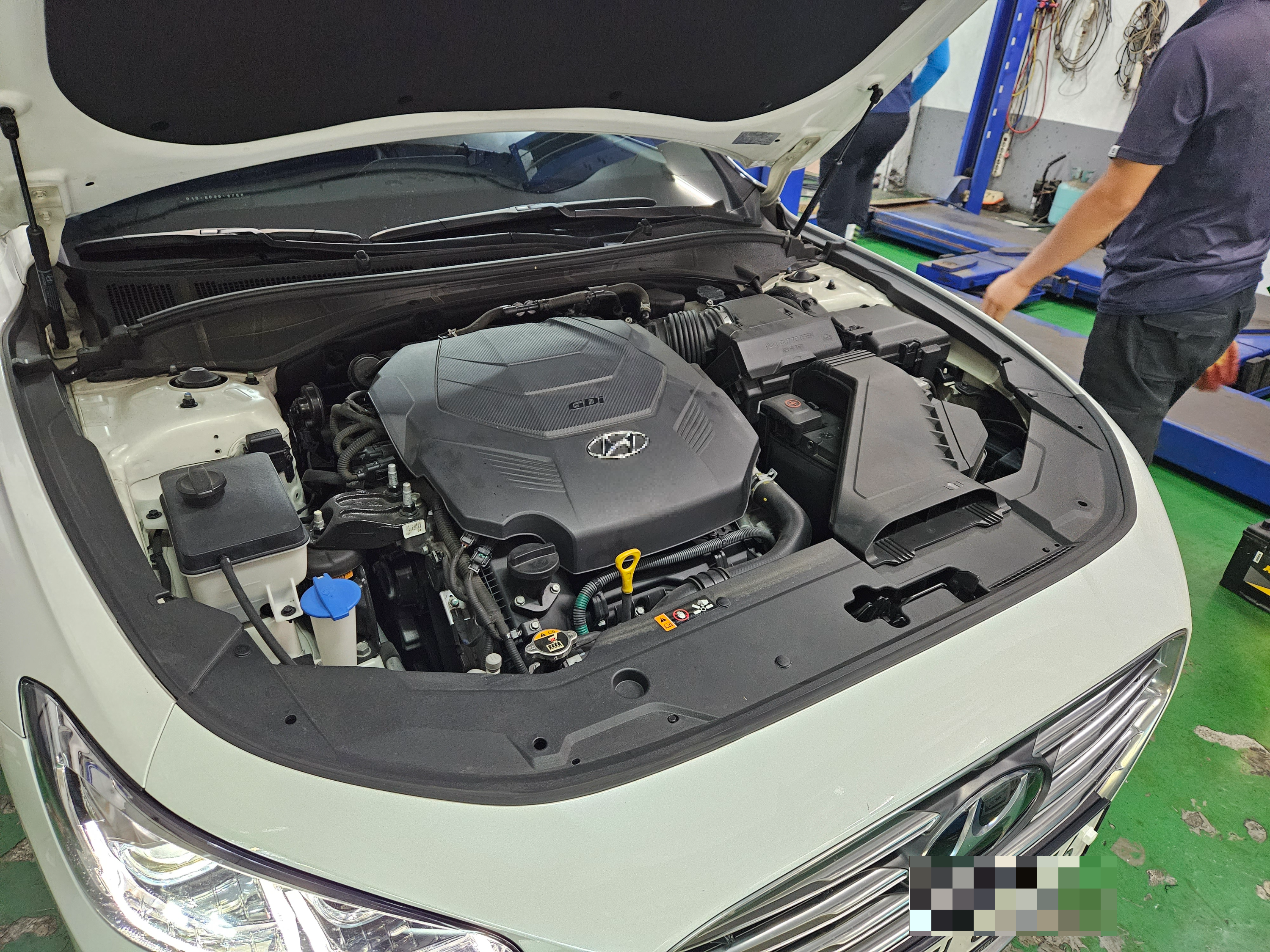 중고차를 사고 처음 카센터를 방문하여 엔진오일도 교체하고 점검을 하는 것이다보니 사장님이 더 꼼꼼히 봐주셨다. 엔진룸도 보면서 차량 상태에 대해서 체크해주셨다.