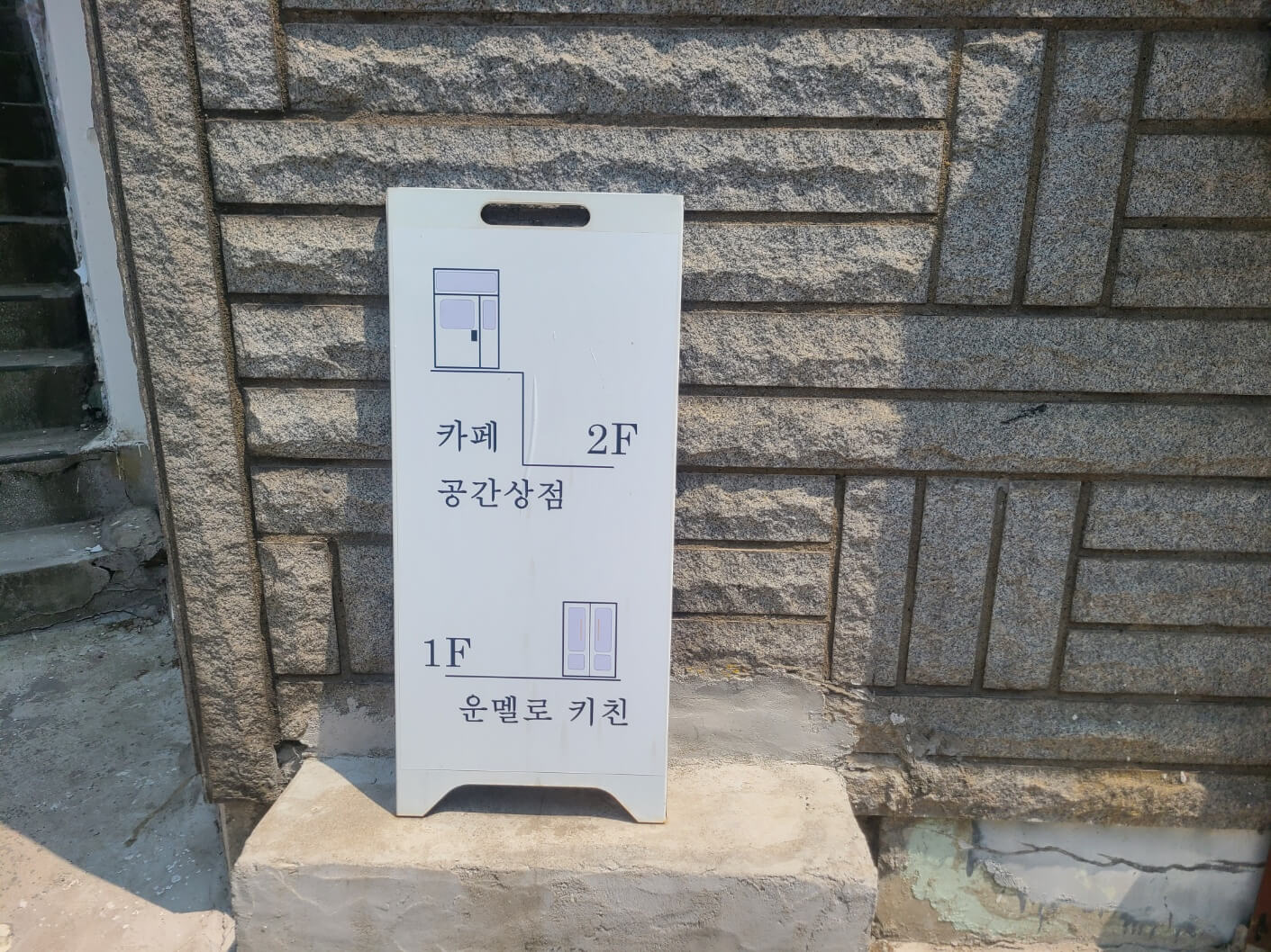내가 다녀온 곳은 바로 운멜로와 함게 건물을 쓰는 공간상점! 카페 이름 대신에 로고가 들어가 있단. 공간상점이라는 단어를 형상화 한 것 같다. 이런 로고가 눈에 잘 안 띄긴 하지만 특색 있어서 좋다. 마케터로써 브랜딩적 요소가 있으면 관심이 많이 가는 것 같다.