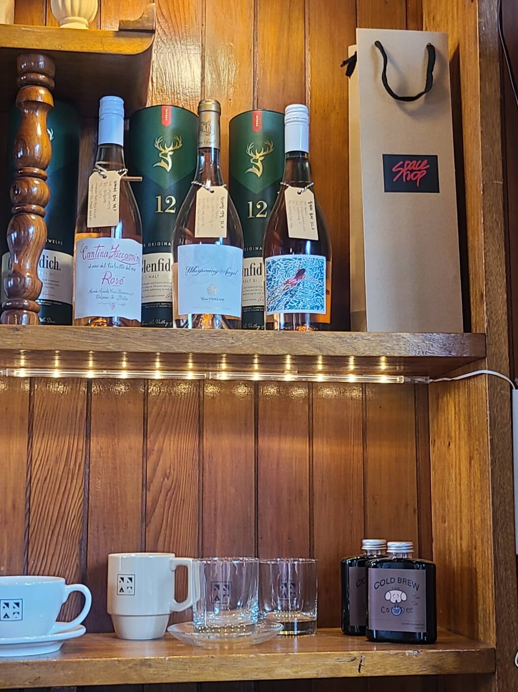 아무튼 술을 비추는데 느낌이 너무 좋았다. 별도로 책장을 놓은 것이 아니라 공간 활용을 해둔 점에서 이래서 공간상점인가! 싶기도 했다 ㅋㅋ 공간 이득 보는 느낌~