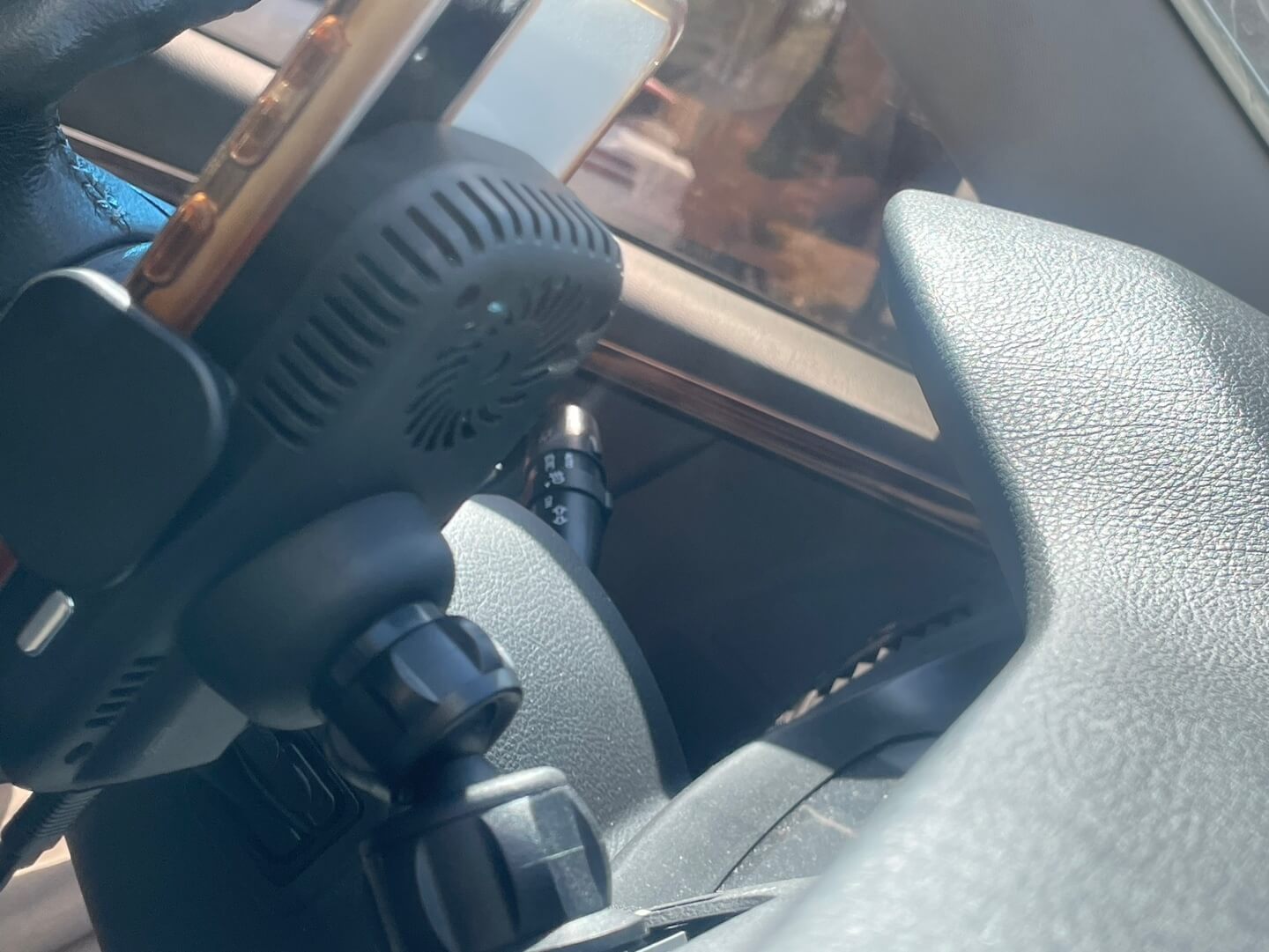 이렇게 뒤에 팬이 달려있다. 선을 연결해두면 팬이 돌면서 발열을 어느 정도 막아주는 역할을 한다. 여름엔 에어컨을 틀어서 괜찮지 않을까? 싶지만 에어컨 틀기는 애매한 따뜻한 날이면 발열이 심해서 바꾸게 되었다. 아무래도 바로 앞에서 선풍기가 돌아가면 비교적 발열이 덜할테니까! 팬이 돌아가는 소음은 신경쓰이지 않았다. 운전할 때 보통 노래를 들을텐데 그러면 거의 안들린다. 민감한 사람이라면 고민해볼 포인트! 난 소리가 잘 안나서 돌아가는지 뒤에 보고 확인했을 정도로 소음은 작았다.