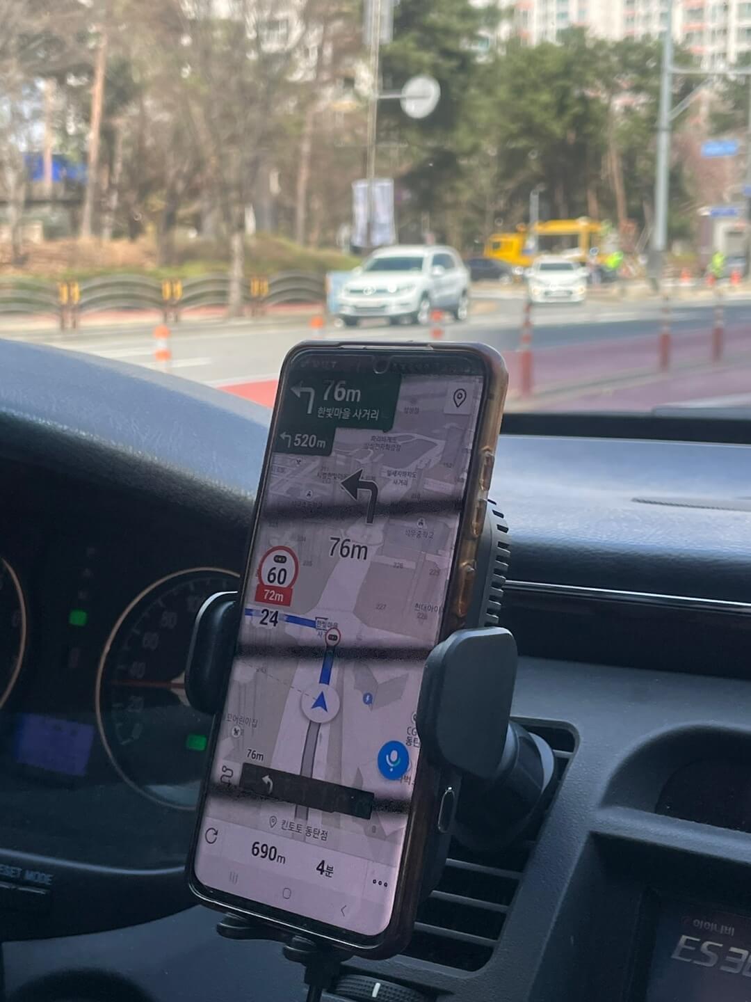기존에 쓰던 집게형 거치대와 다르게 고리형이었다. 처음에 어떻게 쓰는지 몰라서 다시 구매했던 페이지로 들어가서 확인했다. 집게가 연결되어 있는 이음새를 돌리면 집게가 늘어나고 줄어든다. 집게를 조금 늘려놓은 후에 송풍구에 고정시키고 당겨서 고정시키면 된다. 집게보다 더 안정감 있고 조작이 쉽기 때문에 난 더 편하게 느껴졌다. 구매할 때 알아본 바로는 송풍구의 크기나 위치에 따라 장착이 어려운 차량도 있다고 한다. 혹시 차량이 오래되었거나 경차거나 좀 특이하다고 생각된다면 구매 전에 확인해보는 것도 좋을듯하다.(손톱 너무 길어서 집가서 바로 깎음)