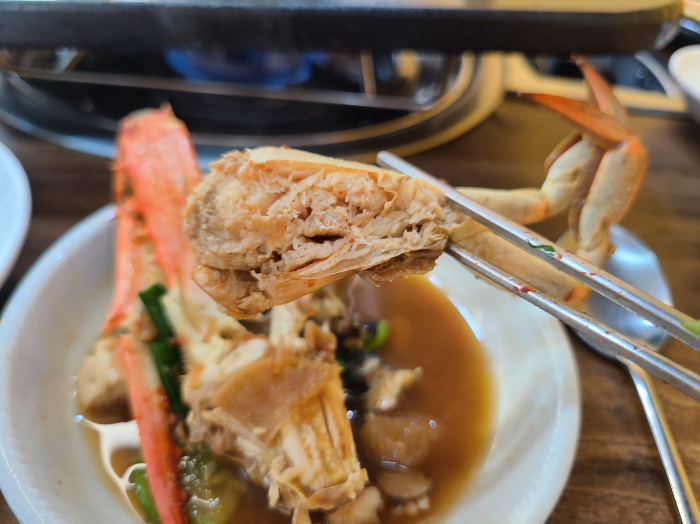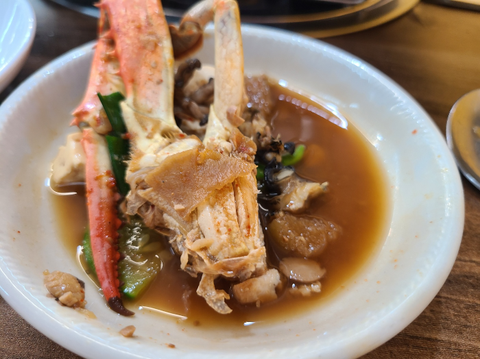 찌개에 들어있는 꽃게 ㄷㄷ 몸통에 알이 꽉 차서 맛이 좋았다. 부드럽게 나오는 속살이 꿀맛이다. 이게 그냥 기본으로 나온다니 감탄했음. 밥이랑 먹어도 뚝딱일듯?