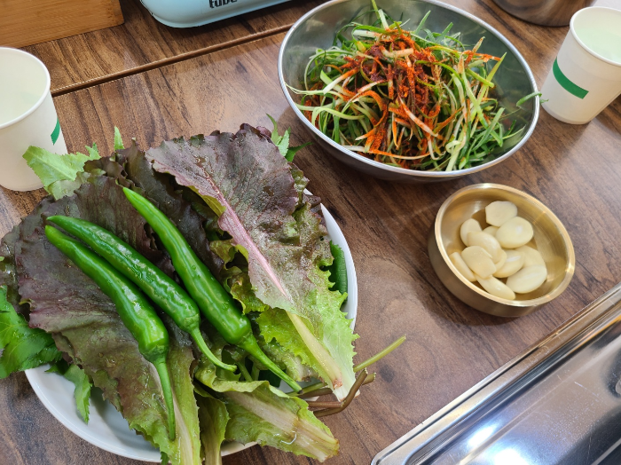 여러 종류의 쌈에다가 반찬 한가득 넣고 와구와구 먹었다. 쌈이 다양하고 싱싱해서 정말 좋았던 청주 삼겹살 맛집, 청남삼겹살이었다.