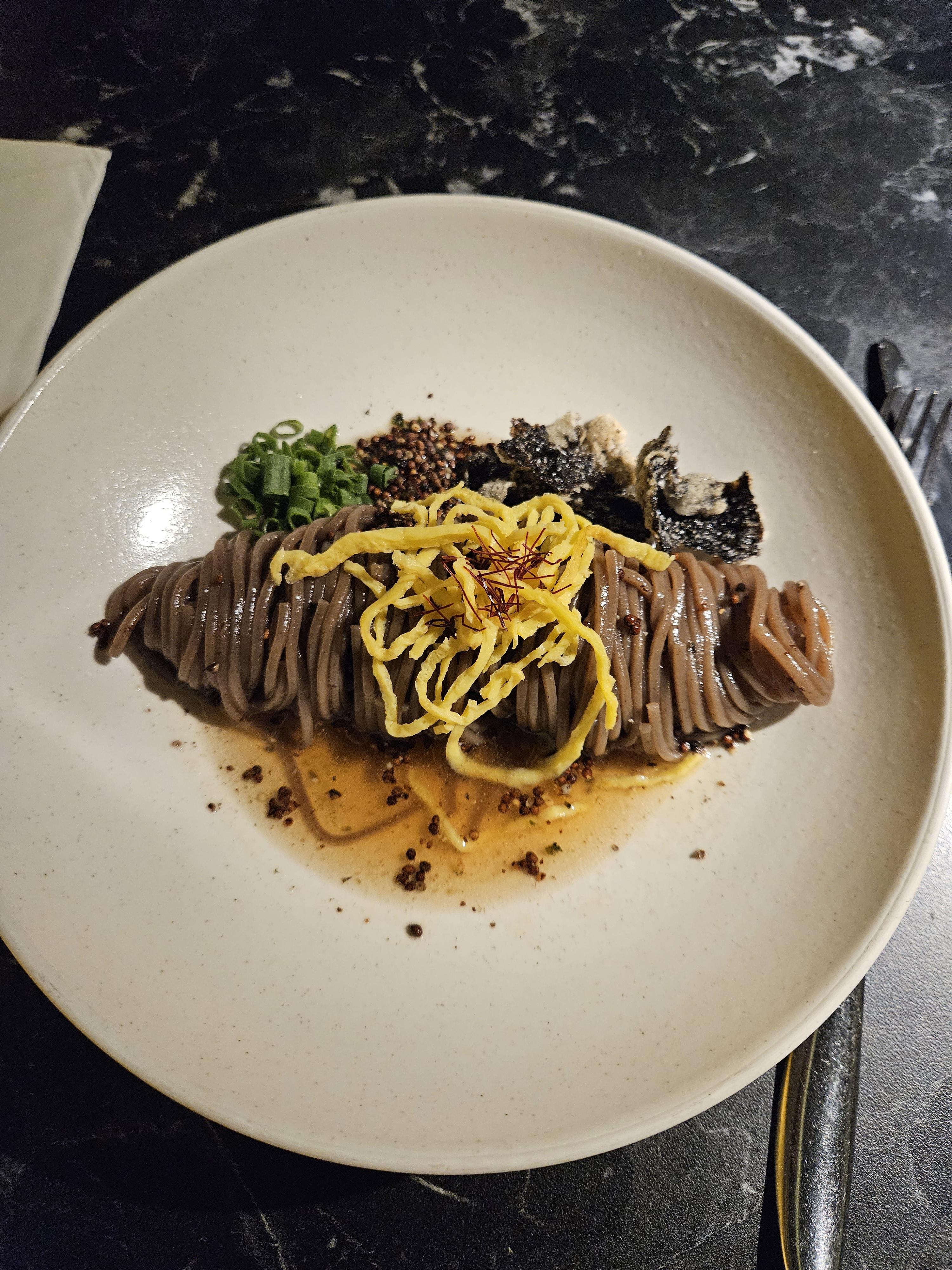 막국수 너무 좋고~ 들기름이 살짝 들어간듯했다. 감칠맛이 진짜 좋았고 중간에 시원한 음식이 한번 나와주니까 입맛도 더 돌았던 것 같다. 코스 요리의 순서도 정말 괜찮았다.